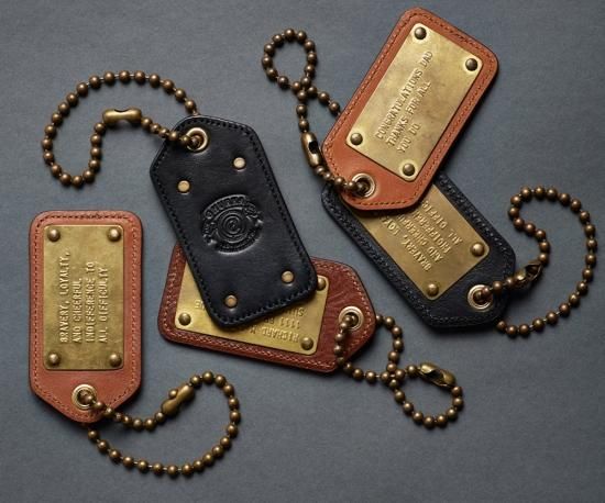 プレートにあなただけのメッセージを刻印できます。(5列 20文字までのアルファベット)キーホルダーやバッグのタグにも最適です。 size: 8.2cm x 4.4cm